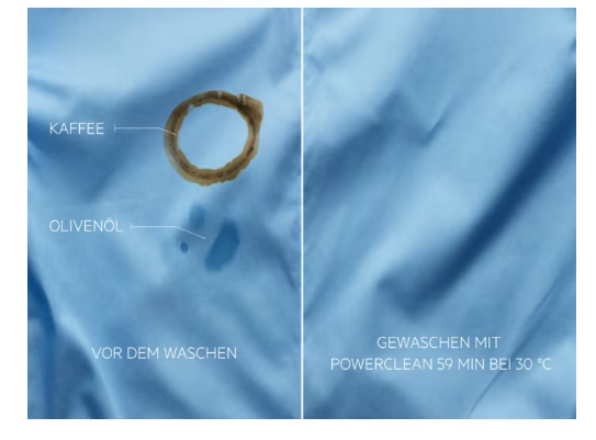 PowerClean Programm: Vollständige Fleckenentfernung in 59 Min. bei nur 30 °C