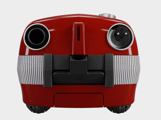 Bodenstaubsauger in hochglanz rot mit AIRBELTTM (Design: Stripes - silber/schwarz), besonders für die Reinigung von Parkettböden geeignet. Mit COMFORT-PRO Bodendüse und Standard-Parkettdüse, 2-fach integriertem Zubehör: Polster- und Fugendüse, 2 Jahre Garantie nach Online-Registrierung.