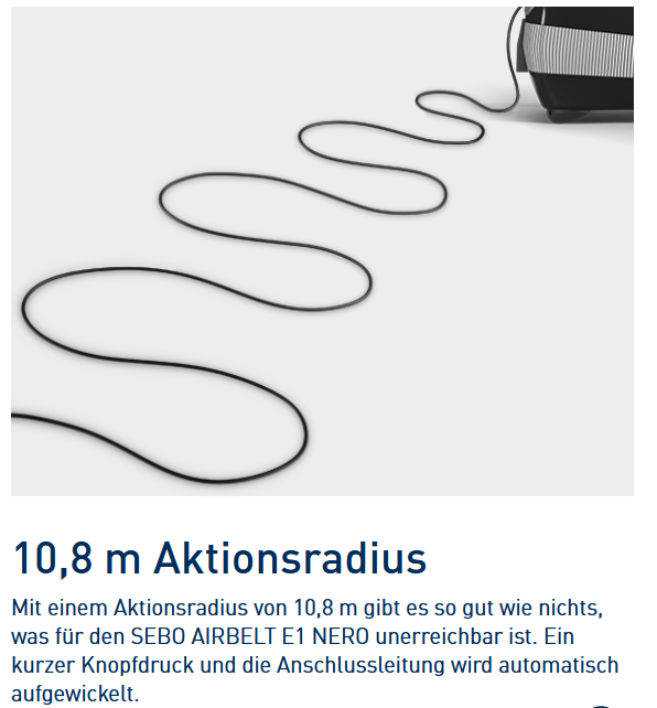 Der SEBO AIRBELT E1 NERO: Das Basismodell der E-Reihe in elegantem Hochglanz-Schwarz